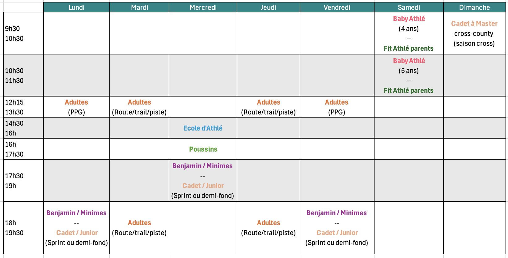 Il n’y a pas d’entraînement officiel pendant les vacances scolaires.